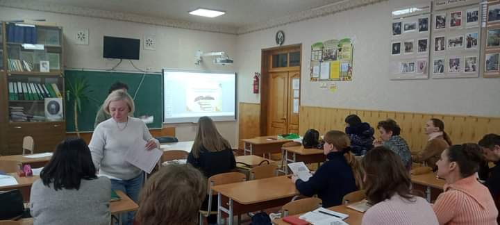 Вчитель української мови та літератури Романенко Л. К. надала практичні поради щодо формування читацької грамотності в учнів 5 класів. Пояснила як засобами кожного навчального предмету можна сприяти розвитку наступних наскрізних вмінь: читати з розумінням, висловлювати власну думку усно і письмово, критично та системно мислити.