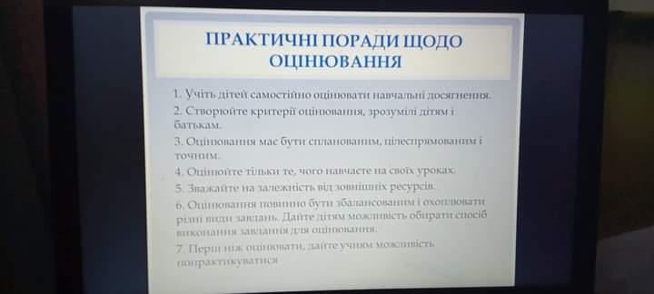 Учасники заходу обговорили основні види оцінювання навчальних досягнень школярів: формувальне, поточне та підсумкове. Розглянули їх переваги та ризики.