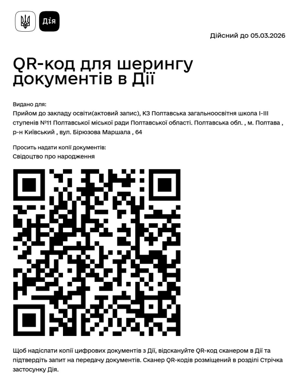 Перелік документів, які необхідно подати для зарахування дитини в 1-й клас.